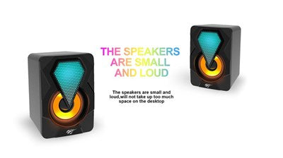 Speakers HAVIT HV-SK210 mini – a trendy compact set of speakers which will enhance your experience of playing time on the PC. The Havit HV-SK210 speakers are connected via a USB 2.0 connector, audio input – mini-Jack 3.5 mm. The power Havit HV-SK210 Speaker of every speaker is 3W ( 6W in total). The reproduced sound is loud, surround, with expressive bass. the quantity control allows you to settle on the foremost comfortable sound level for every user. The Havit HV-SK210 Speaker built-in LED backlight of the speakers smoothly provides additional impressions from the gameplay, taking note of music or watching movies. The Havit HV-SK210 Speaker compact sizes of columns provide their convenient arrangement on a desktop, and therefore the original and classy design is successfully combined with any interior. the planning of the angle of elevation makes the direction of sound propagation closer to the position of the ear.
