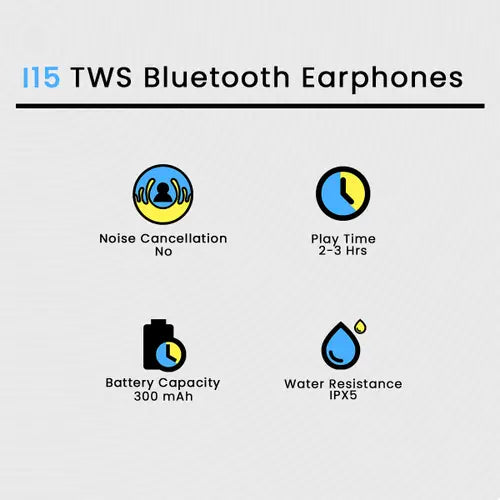 General Features Noise Cancellation No Water Resistant Yes Charging Interface lightning Auto Pairing Yes Compatibility Android IOS & Windows Mic Yes Driver Size N/A Connectivity Bluetooth Version 5.0 Bluetooth Range 10 m Microphone Yes Battery Capacity for buds N/A Capacity for Case N/A Playtime 2-3 Hrs Charging Time 1.5 Hr